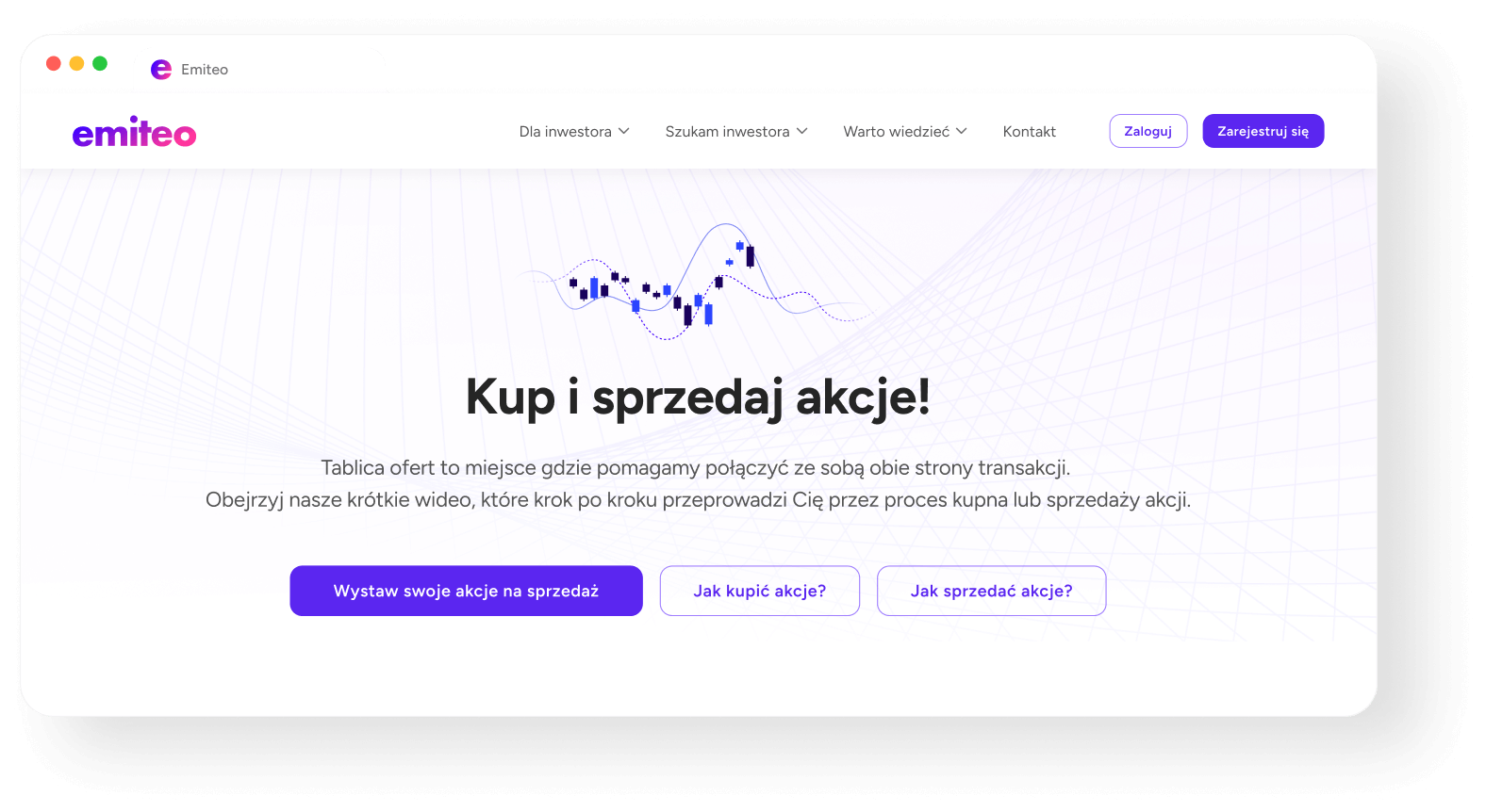 Jeżeli jesteś posiadaczem akcji spółki, które wyemitowała je za pośrednictwem Emiteo po 17 października 2023 roku, możesz wystawić ofertę ich sprzedaży na naszej tablicy ogłoszeń.
