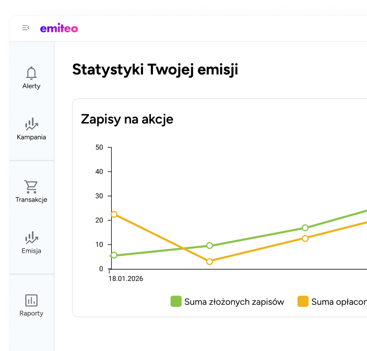 Zobacz aktualne okazje inwestycyjne na Emiteo.plNa podstawie szczegółowych raportów analizujemy jakość zebranych leadów. Emisję uruchamiasz tylko wtedy, gdy masz pewność, że zainteresowanie rynku jest satysfakcjonujące.