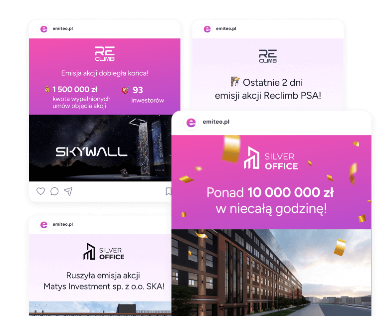 Dostęp do zweryfikowanej bazy inwestorów Emiteo, kampanie newsletterowe i działania w social media.